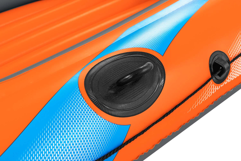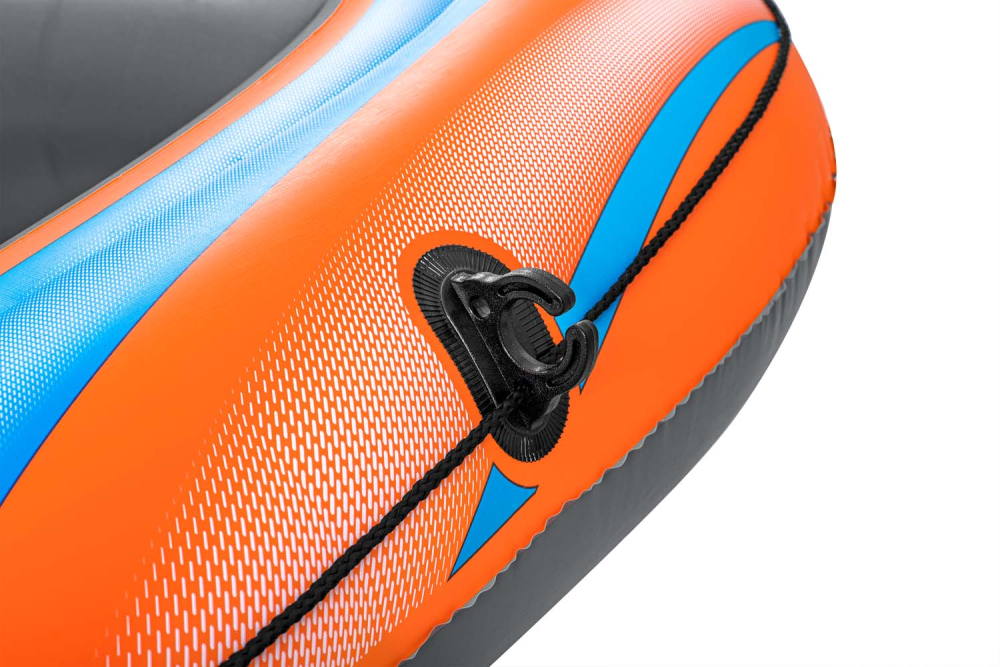 Die beigefügte Fußpumpe ermöglicht ein müheloses Aufpumpen, während der robuste Tragegriff den Transport zum und vom Wasser erleichtert. In leuchtendem Orange gehalten, ist das Schlauchboot gut sichtbar. Die umlaufende Halteleine mit integrierten Ösen bietet zusätzliche Sicherheit und Kontrolle. Die Lieferung umfasst zudem noch einen praktischen Reparaturflicken.