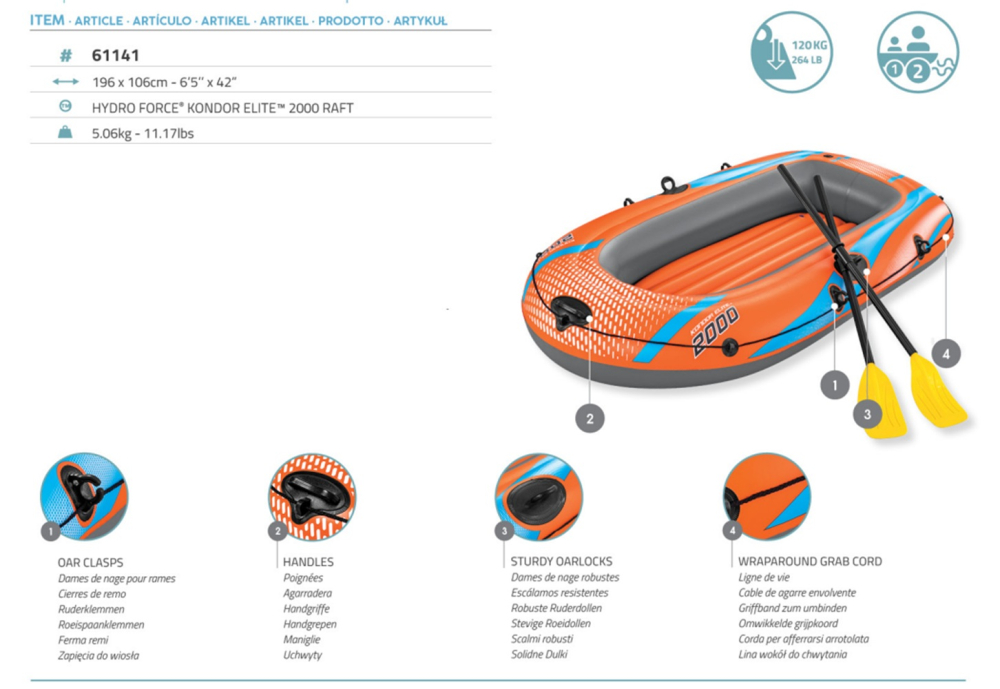 Bestway Schlauchboot-Set Kondor Elite 2000 196 x 106 x 31 cm