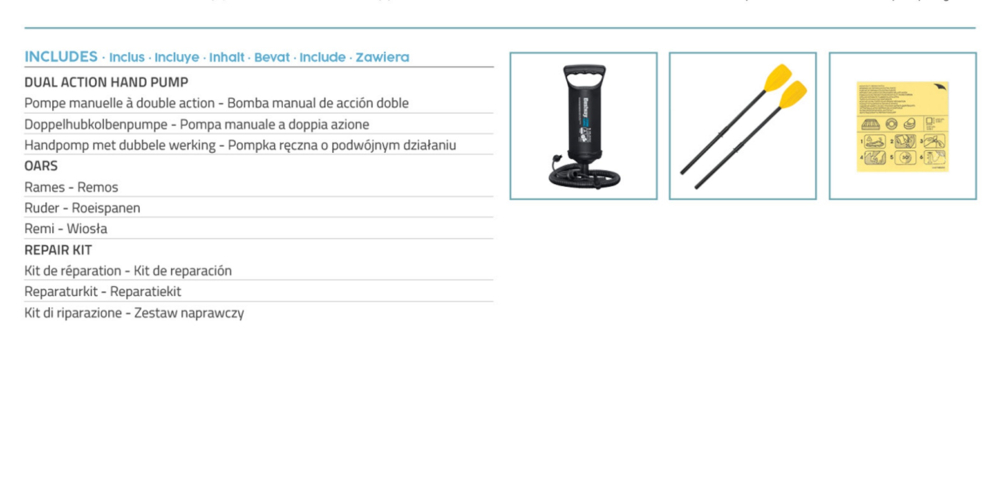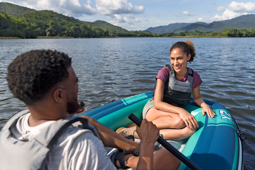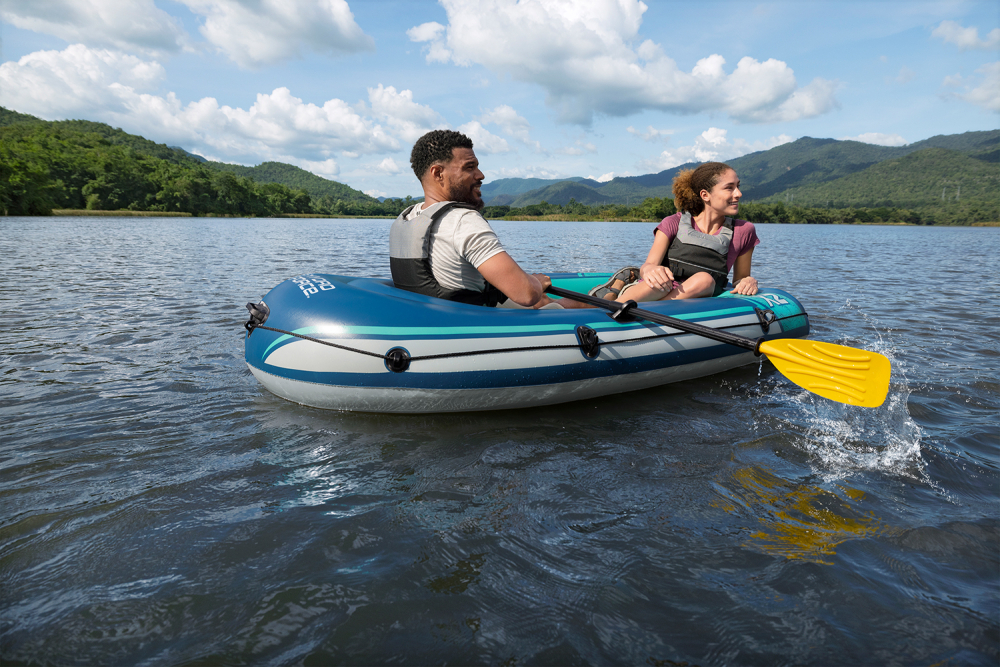 Im Lieferumfang des Bestway® Hydro Force® Schlauchboot-Sets Trek™ X2 findest Du alles, was Du für Dein Abenteuer auf dem Wasser benötigst: Ein Paar 124 cm lange Ruder, eine leistungsstarke Air Hammer™-Handpumpe und Reparaturflicken für den Fall der Fälle. So bist Du bestens ausgestattet und startklar für Dein nächstes Abenteuer.