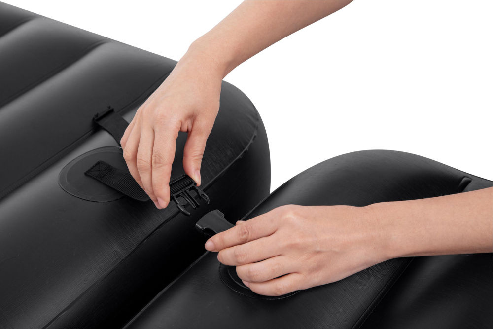 Dieses innovative Luftbett kann auf drei verschiedene Arten verwendet werden. Dabei helfen die praktischen, verstellbaren Schnallen. Das Luftbett kann separat als zwei Einzelbetten, großes Doppelbett oder doppellagiges Einzelbett verwendet werden.