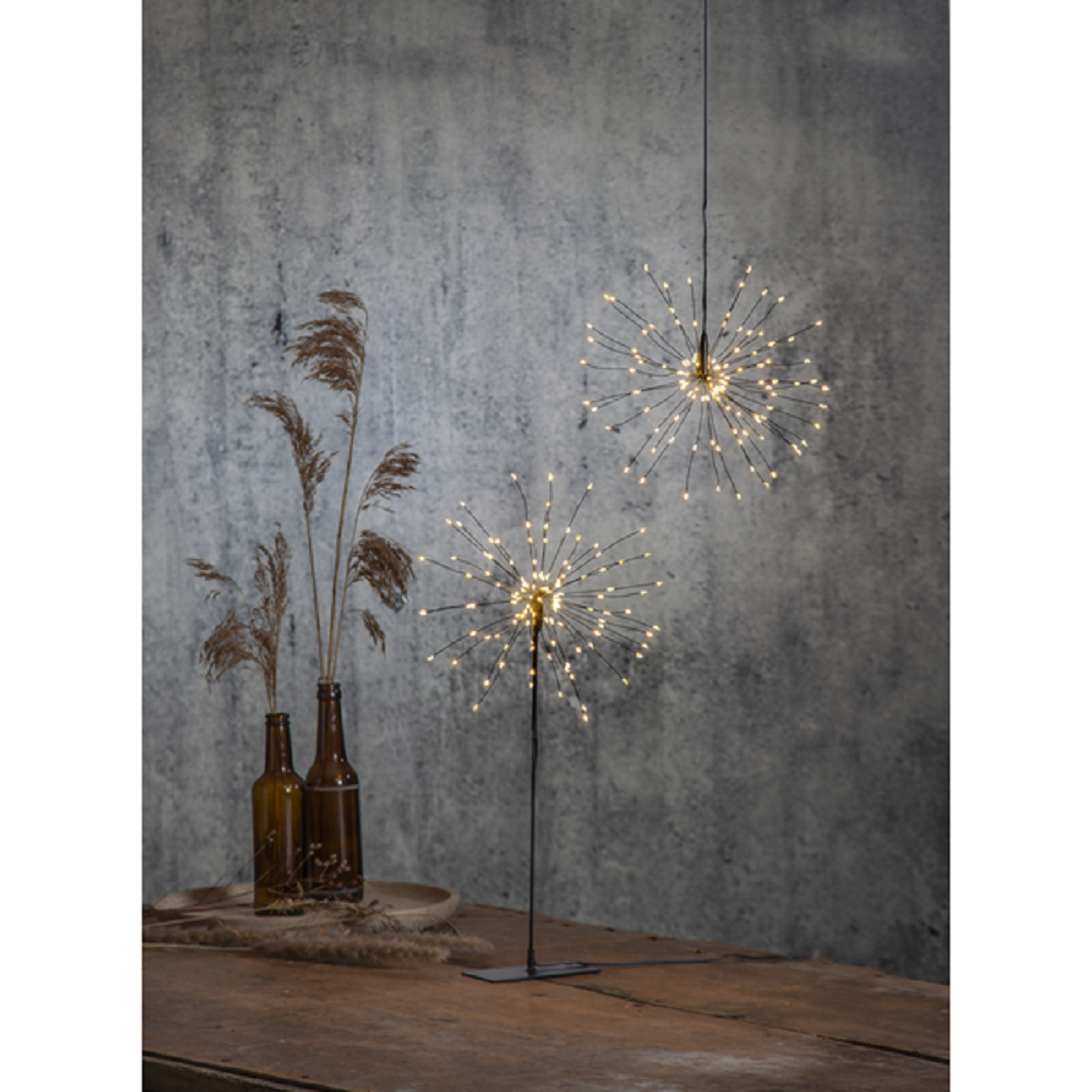 STAR Trading 3D-LED-Hängestern ''Firework'' (Feuerwerk) aus schwarzem Metall mit 120 warmweißen LEDs.