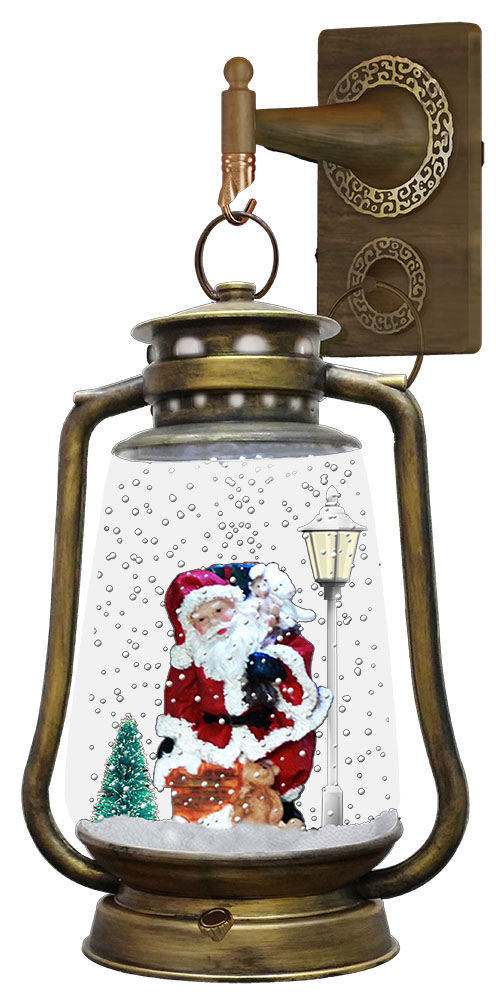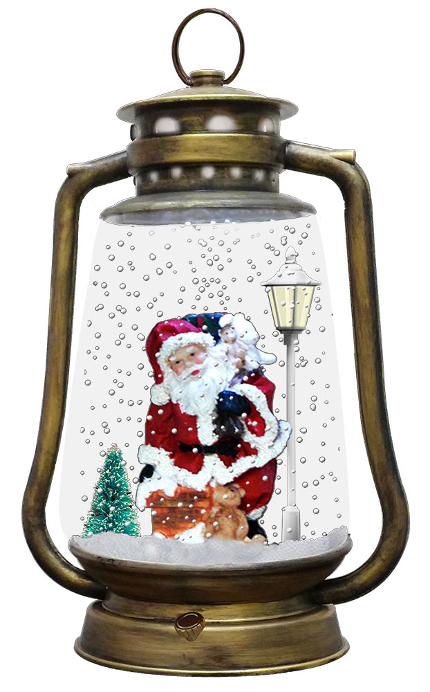 Christmas Paradise Schneiende LED Laterne 35 cm Motiv Santa gold INNEN