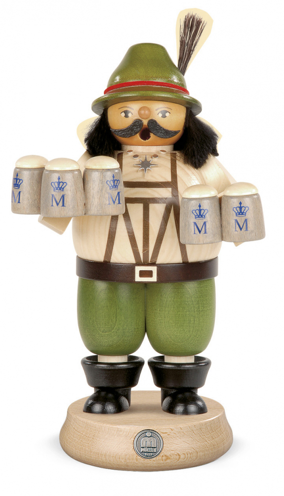 Das Oktoberfest ist nicht nur in Bayern beliebt, sondern wird in kleinerem Rahmen in vielen anderen deutschen Städten und gar über die deutschen Grenzen hinaus ähnlich intensiv gefeiert. Auch im Erzgebirge hat man sich dieser tollen Tradition angenommen. - Handgefertigter Räuchermann aus einheimischen Hölzern.